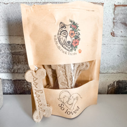 WildWolfePack Treats are homemade dog treats consisting of high quality, pup-friendly ingredients made with lots of love from my kitchen. I take a lot of pride in making each batch of treats with so much love and care for your dog. Our treats are always taste-tested by our highly trained taste testers Wendy, Eevee and Suzie to guarantee your pup will love every bite!